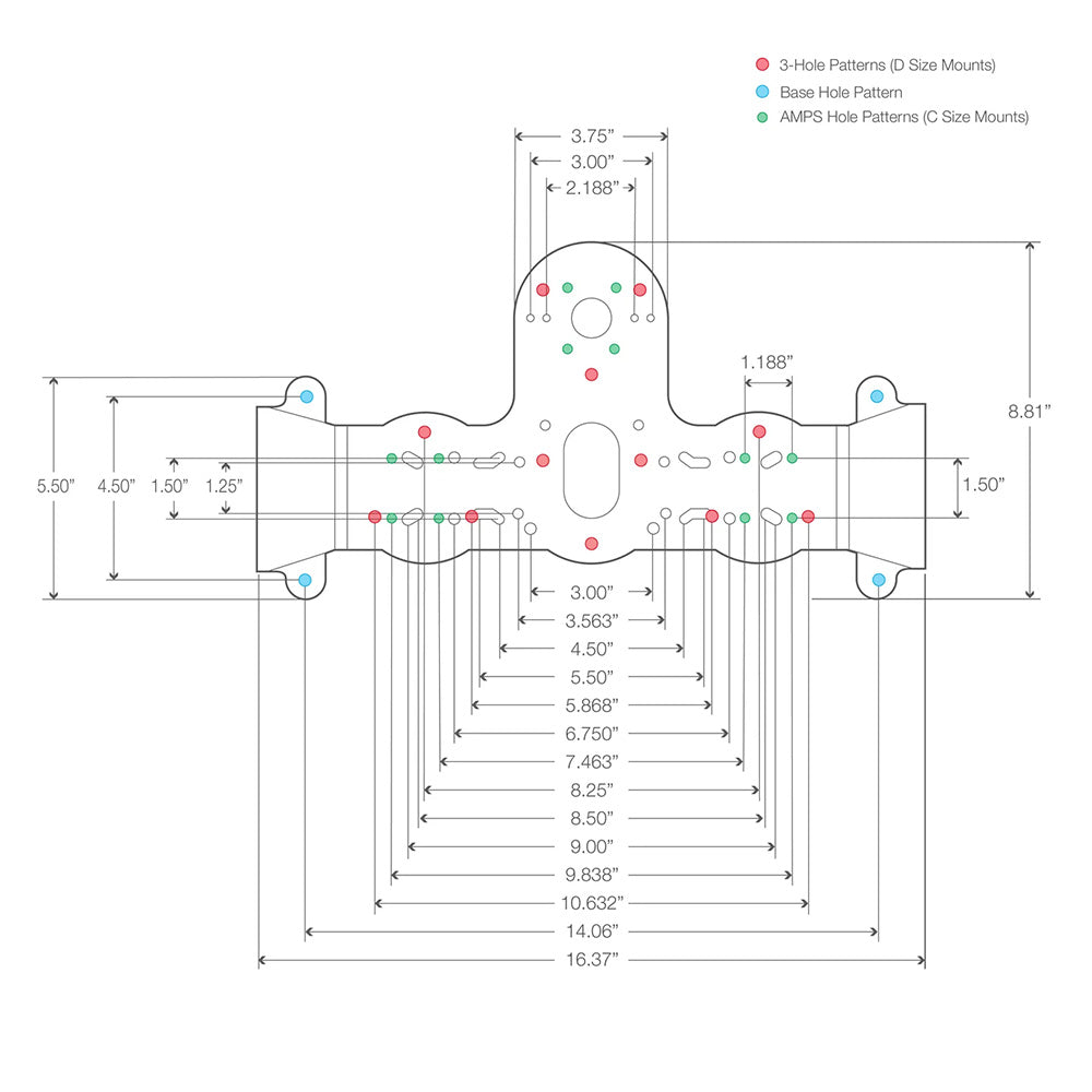 - Includes AMPS and tri-hole patterns for RAM® D-size bases